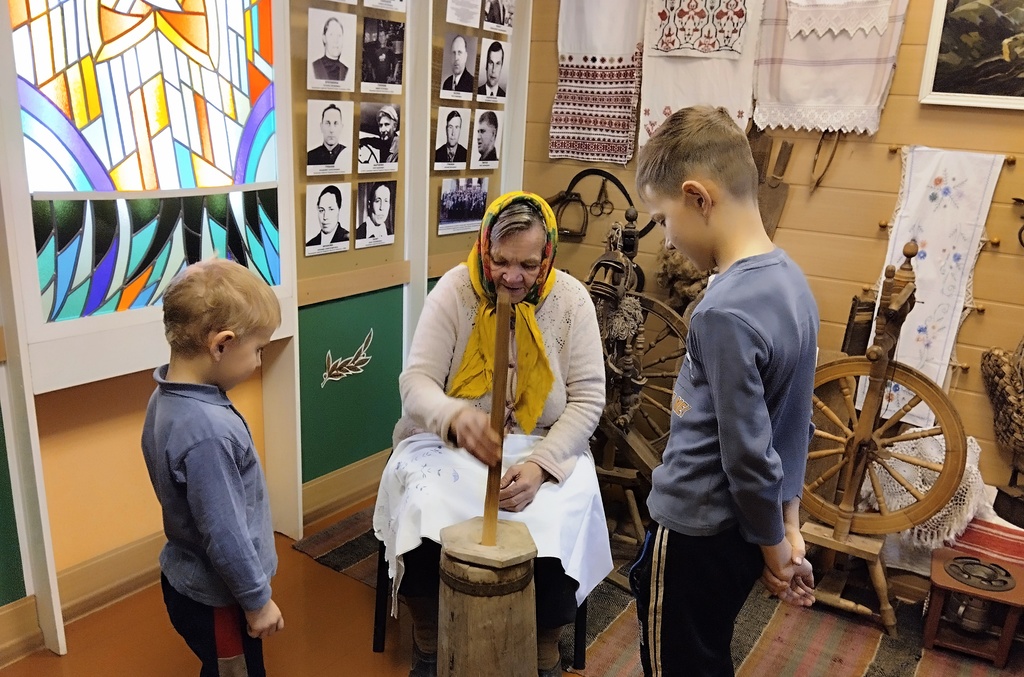 Яна пазнаёміла юных удзельнікаў мерапрыемства з прыладамі працы, якімі карысталіся іх продкі, а таксама з традыцыямі і святамі, якія існавалі на Кавалёўскай зямлі.