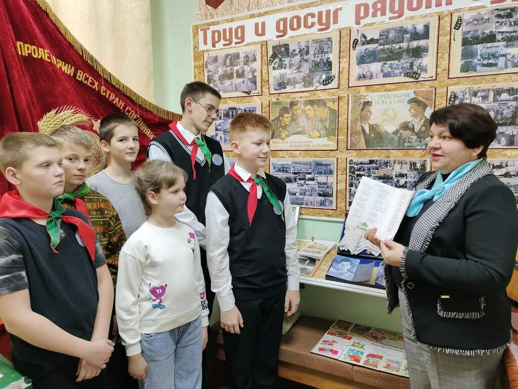 Участники мероприятия посетили историческую комнату "Вехи истории прежприятия" , где библиотекарь Ольга Кравцова рассказала об истории развития предприятия «Сельхозтехника» (ныне ОАО«Райагросервис»), трудовых достижениях его работников, у мемориальной доски, установленной на здании библиотеки, почтили память погибших в Великой Отечественной войне минутой молчания. Особенно интересным для подростков стало общение с ветераном труда Анатолием Чухновым, который посвятил работе на предприятии 38 лет.