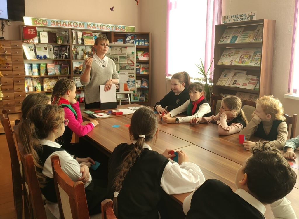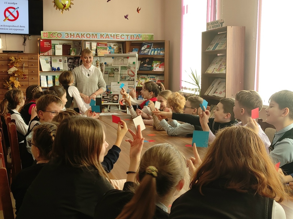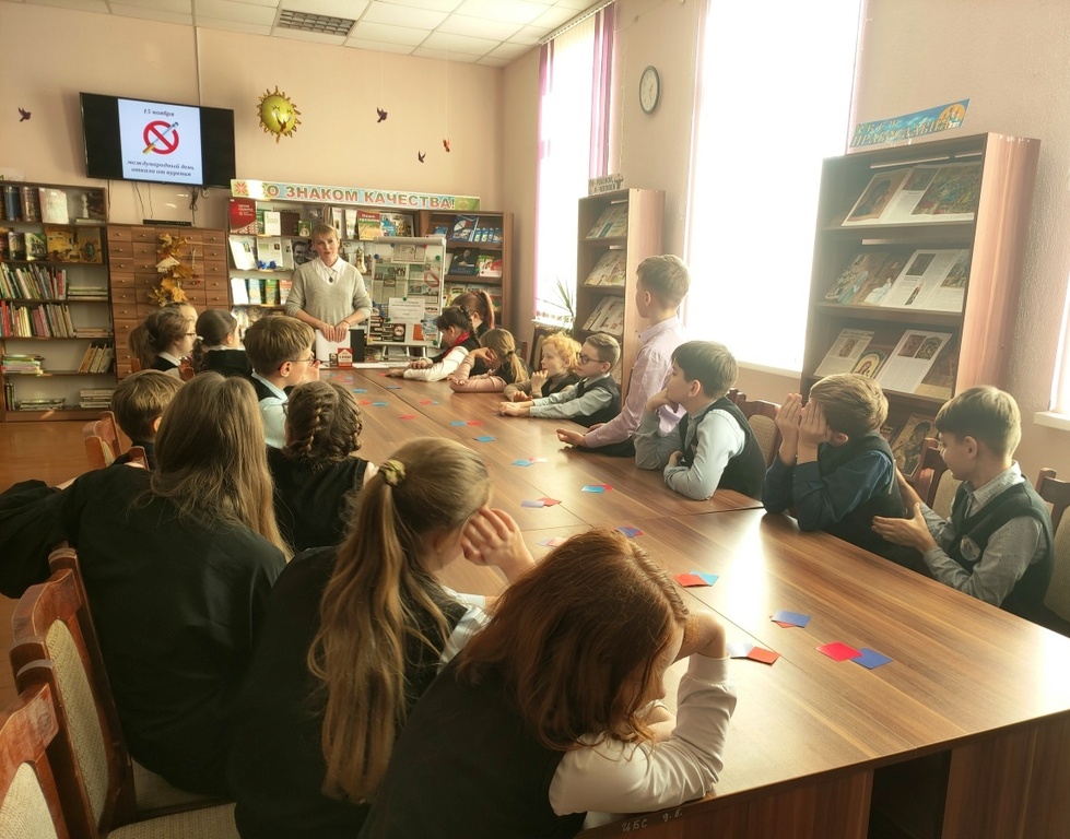 Заведующий отделом Наталья Крыж-Мартецкая рассказала школьникам о негативном влиянии сигарет и вейпов на организм подростков, о том, какой непоправимый вред курильщики наносят своему организму. Дети посмотрели документальный фильм «Под парами», узнали о болезни Evali, которой подвержены курильщики электронных сигарет, познакомились с книгами о пагубном воздействии курения на здоровье человека.