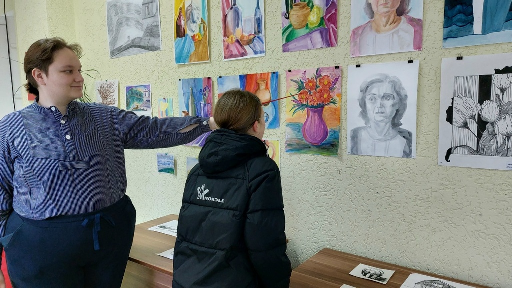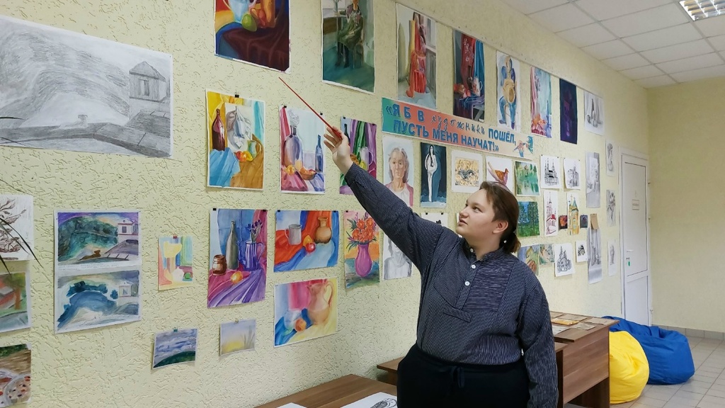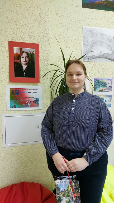 На презентации присутствовали воспитанники социально-педагогического Центра и их родственники, читатели библиотеки. Калина поделилась секретами обучения рисования, об учёбе в университете, рассказала об истории создания работ.