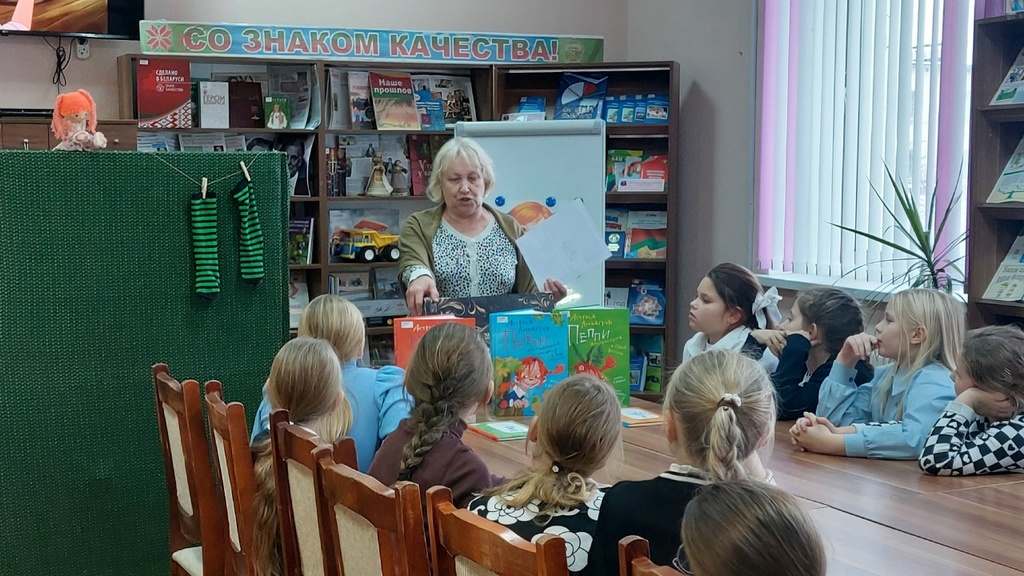 Библиотекарь Лариса Васильева увлечённо рассказала о жизни писательницы и главной героине повести — рыжеволосой Пеппи, которая не признавала никаких правил и легко могла обвести вокруг пальца любого взрослого. Дети с интересом смотрели кукольный спектакль, отвечали на вопросы викторины, рисовали и играли.