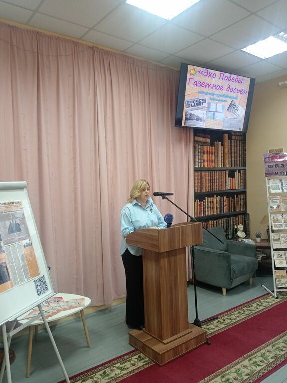 Работу в рамках видеопроекта ”Эхо Победы. Газетное досье“ презентовала руководитель народной студии литературного творчества ”Под абажуром“ Елена Бахмацкая.