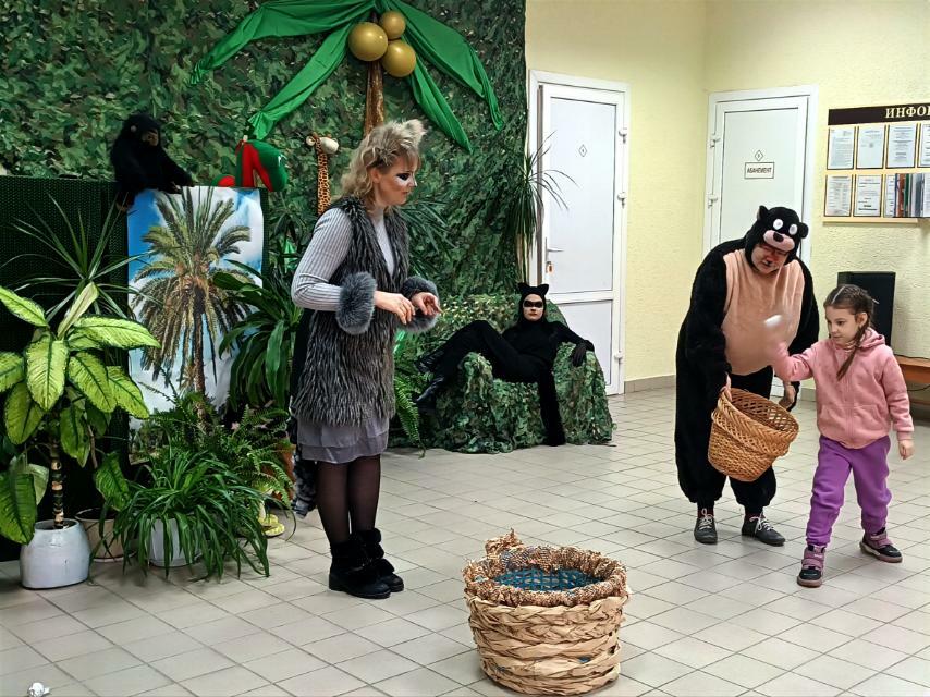 Герои сказки: волчица Ракша, медведь Балу, змей Ка, черная пантера Багира обучали детей навыкам выживания в трудных условиях непроходимых джунглей. Ребята с удовольствием принимали участие в различных играх и конкурсах на ловкость, меткость, внимательность и сообразительность. А в завершение мероприятия вместе с героями одержали победу над тигром Шерханом.