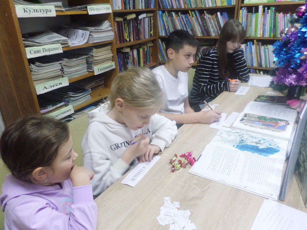 Библиотекарь Ольга Игнатик познакомила юных читателей с историей возникновения праздника, с традициями встречи Нового года в разных странах мира. Дети активно участвовали в играх, отвечали на вопросы викторины, отгадывали загадки, читали наизусть стихи о новогоднем празднике.