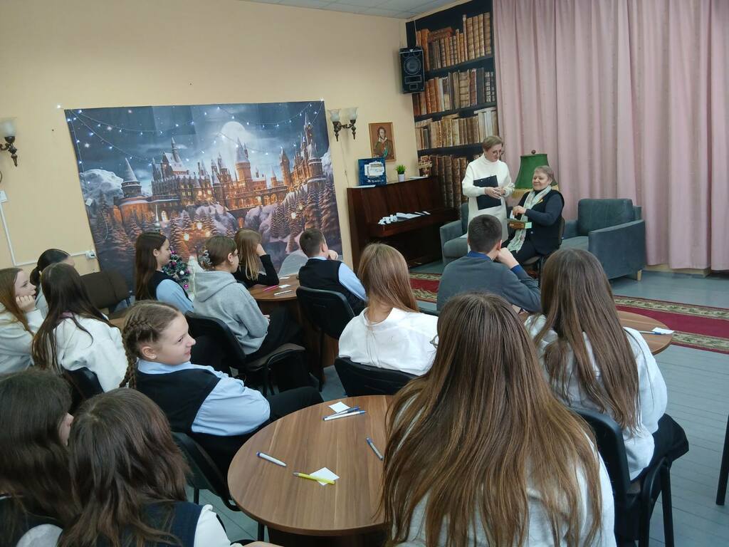 Заведующий отделом Ольга Юркова рассказала учащимся об истории праздника, о традициях празднования Рождества и святок. Ребята с удовольствием отвечали на вопросы литературной викторине, участвовали в развлекательных конкурсах и рождественских играх.