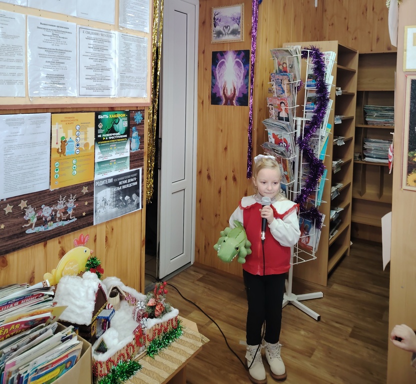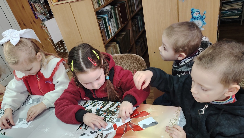 Дети читали новогодние стихи, с интересом складывали пазлы, а также познакомились с книгами, представленными на книжной выставке «Новогодние огни приглашают в сказку».