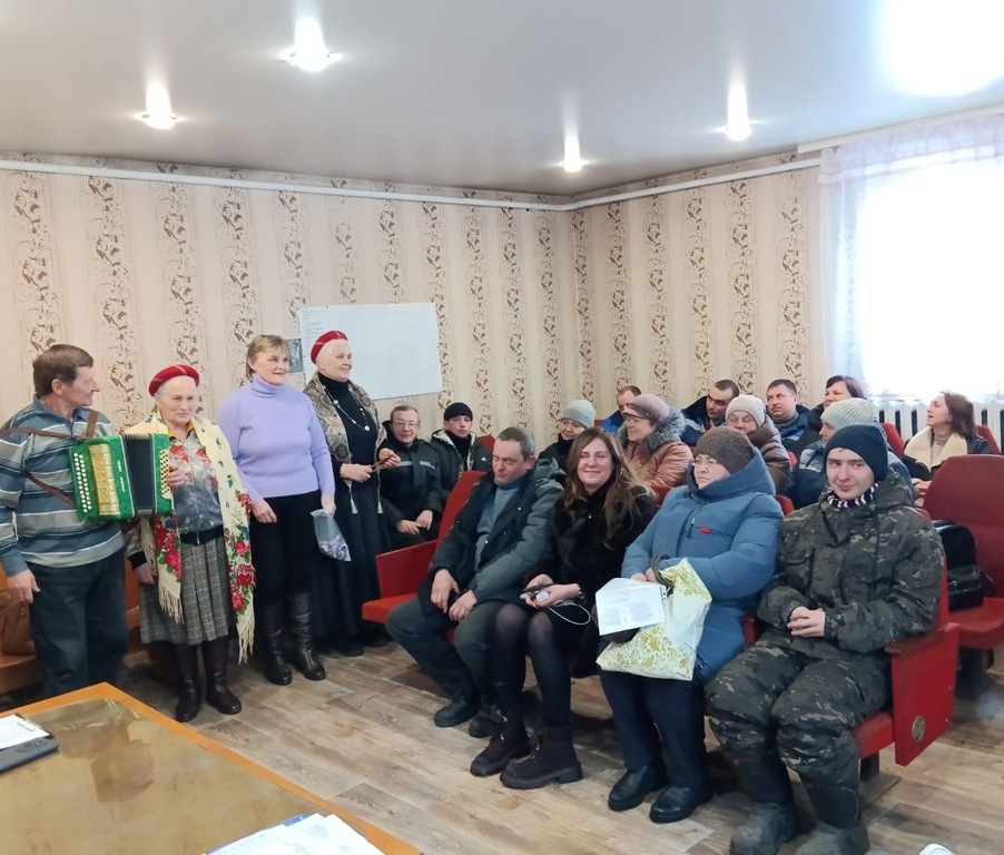 24 февраля библиотекарь филиала "Адаменская сельская библиотека" Майя Новик и участники народного фольклорного коллектива «Медуница» филиала «Дом культуры агрогородка Адаменки» посетили мехмастерские ГП «Адаменки-Агро» и провели для работников сельхозпредприятия вечер-поздравление «Для вас, защитники Отечества».