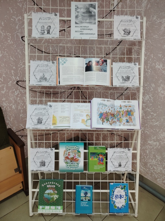 Гости мероприятия узнали об истории и традициях праздника, познакомились с книгами, представленными на книжной выставке «Масленница-блинница, весны именинница», водили хороводы,  играли в народные игры и отгадывали загадки. Закончилось мероприятие традиционным масленичным чаепитием с блинами.