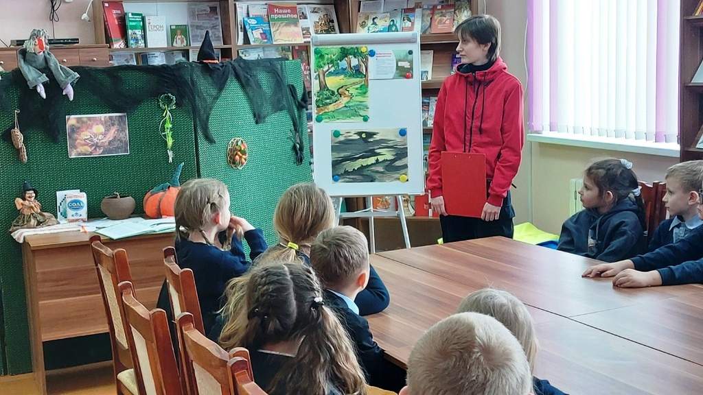 Библиотекарь Софья Бирюлькова рассказала о происхождении болот, их пользе для человека, о растениях, которые на нём растут, о животных и птицах, которые обитают на болотах. Школьники вспоминали сказки, в которых упоминаются болота, познакомились с мифологическими существами, обитающими на болотах, которых описывает в своих работах известный белорусский этнограф Николай Никифоровский.