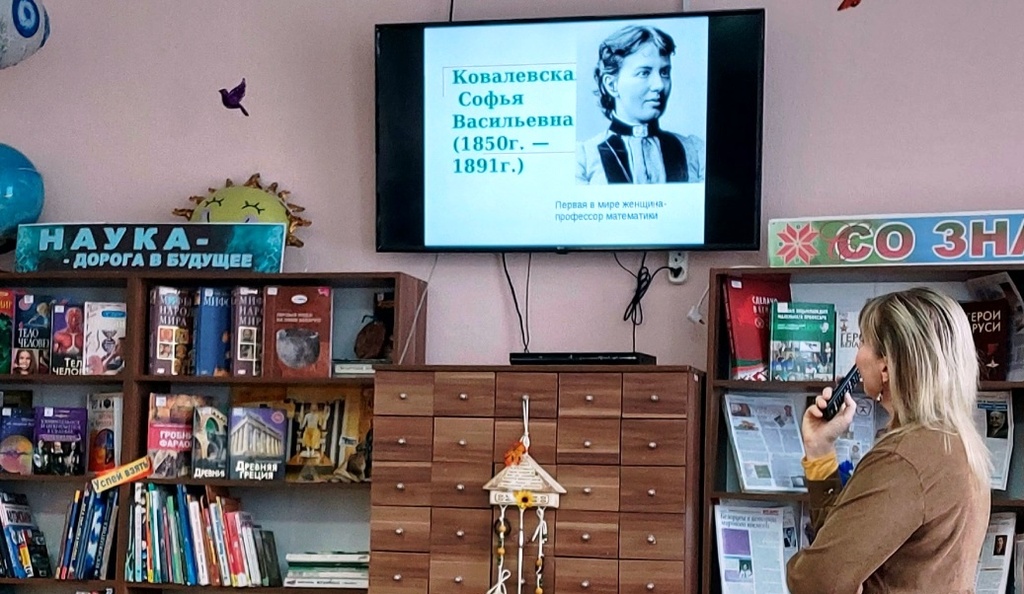 Заведующий отделом Наталья Крыж-Мартецкая рассказала о вкладе  женщин в развитие мировой науки, подробно остановившись на деятельности профессора математики Софьи Ковалевской, детство которой прошло в Витебской области. В рамках мероприятия прошла презентация книжной выставки, посвящённой Году белорусской женщины.