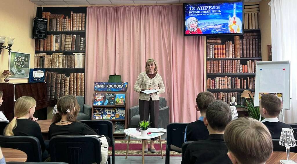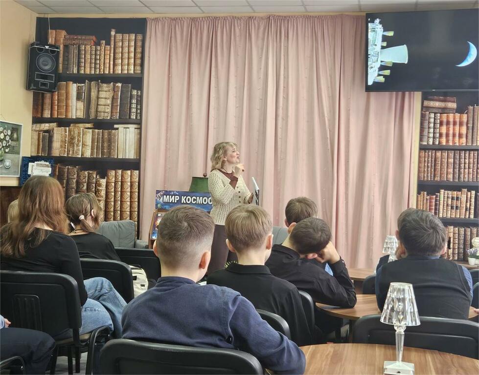 Заведующий отделом Наталья Крыж-Мартецкая рассказала об истории развития космонавтики, о космических кораблях и загадках Вселенной, о первом лётчике-космонавте Юрии Алексеевиче Гагарине, а также о первой белорусской женщине-космонавте Марине Василевской. Ребята активно принимали участие в игре «Планеты солнечной системы», отвечали на вопросы викторины «А знаете ли вы?»